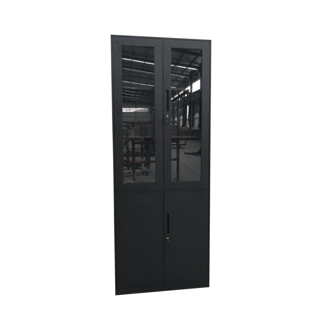 ארון מתכת משולב דלתות זכוכית צבע שחור- H2100*W800*D400