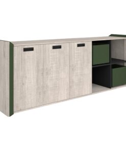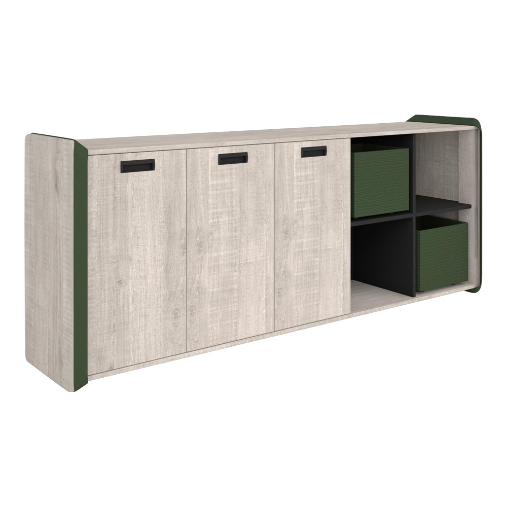 כוננית מותאמת לשולחן עבודה, פלטה ודלתות מלמין, רגלי מתכת