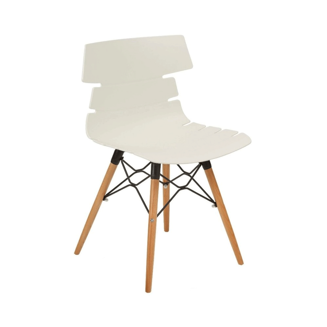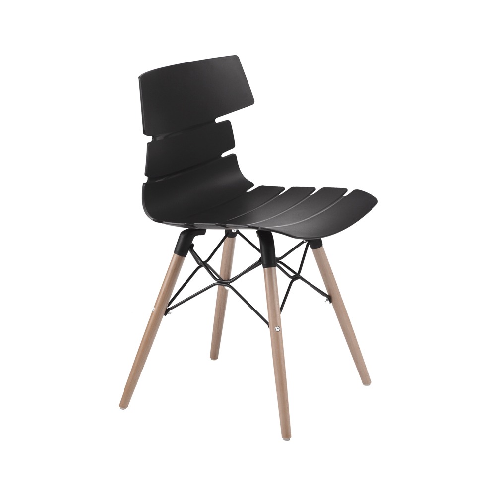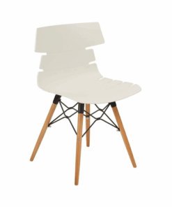 כסא אירוח מעוצב, מושב פלסטיק, שלד עץ 4-רגליים משולב פלדה