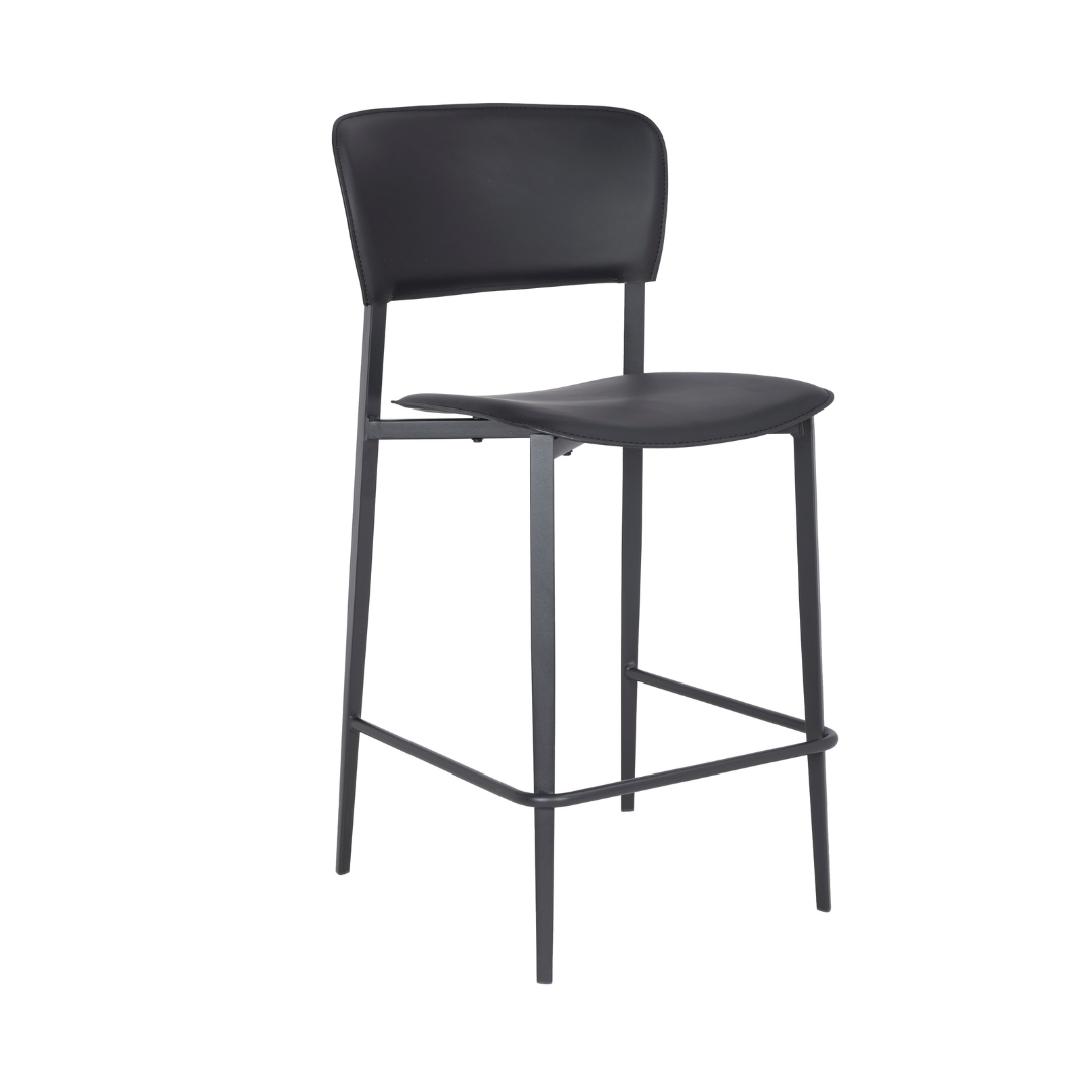 כסא בר 65 ס”מ, מושב ריפוד דמוי עור, שלד מתכת 4-רגליים