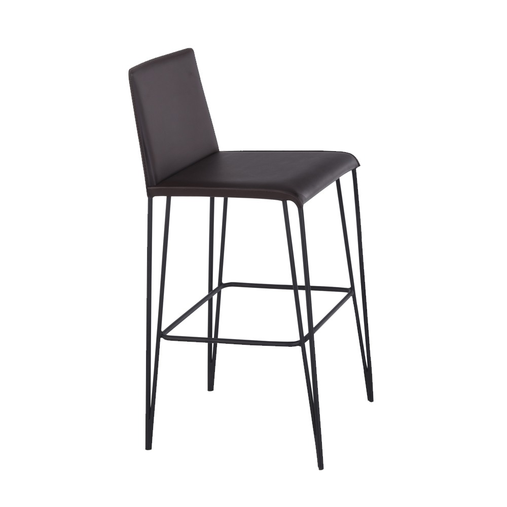 כסא בר, ריפוד עור ממוחזר, שלד מתכת