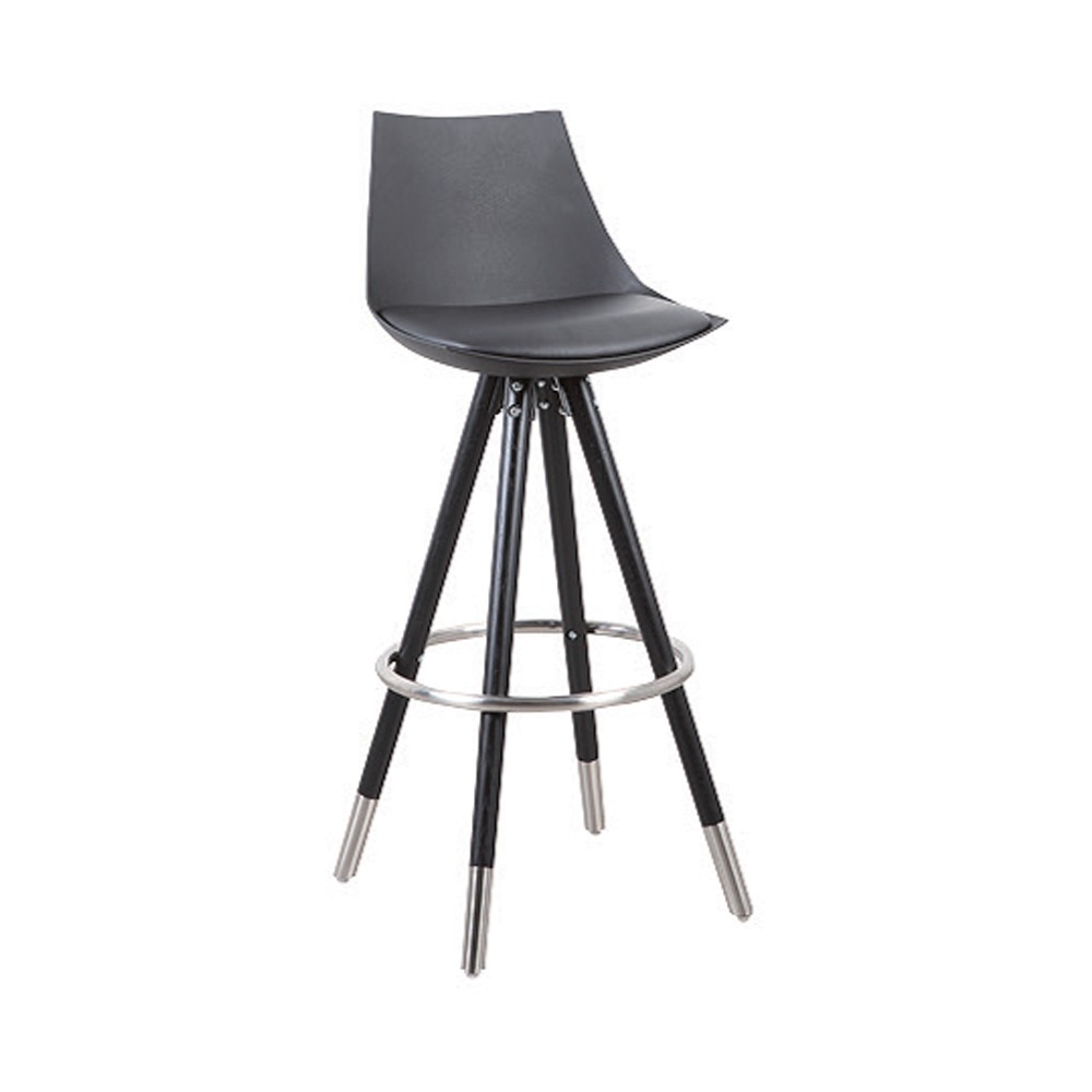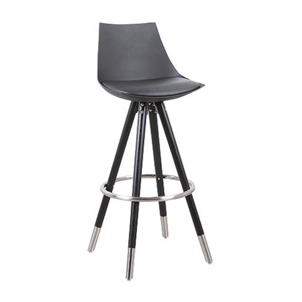 כסא בר יוקרתי, גב פלסטיק, כרית מושב ריפוד דמוי עור, שלד עץ 4 רגליים
