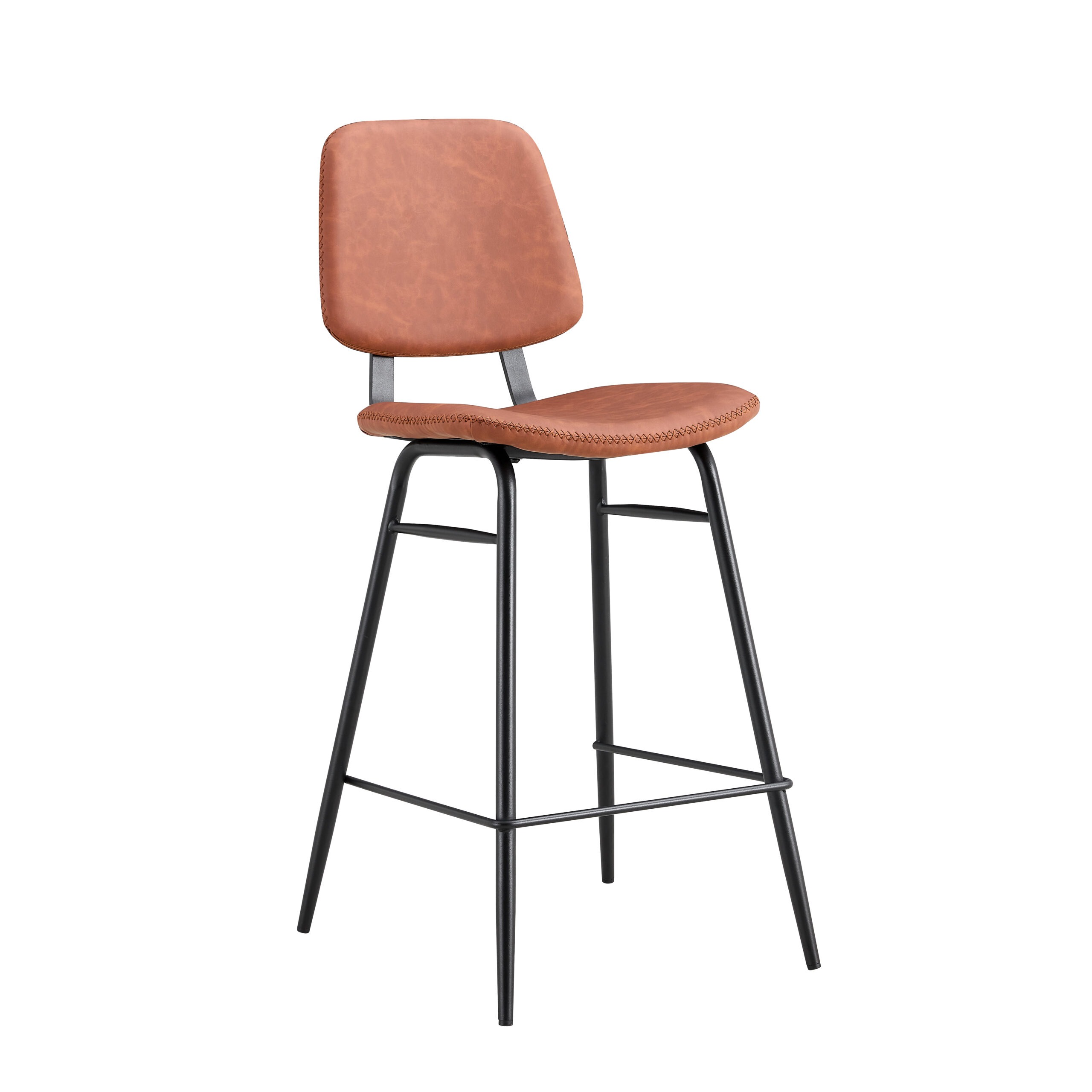 כסא בר ריפוד דמוי עור, שלד מתכת 4-רגליים