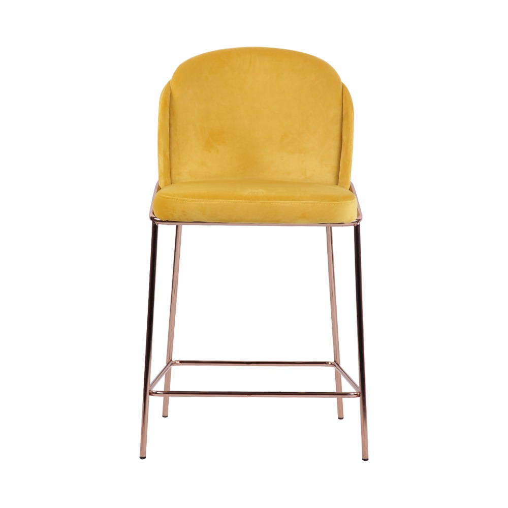 כסא בר מעוצב, ריפוד בד קטיפה, שלד מתכת