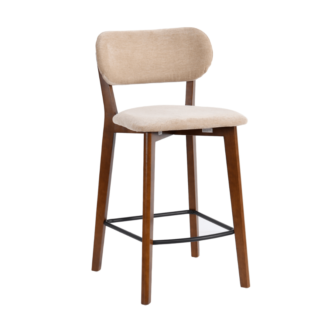 כסא בר מעוצב, בד, שלד עץ 4 רגליים