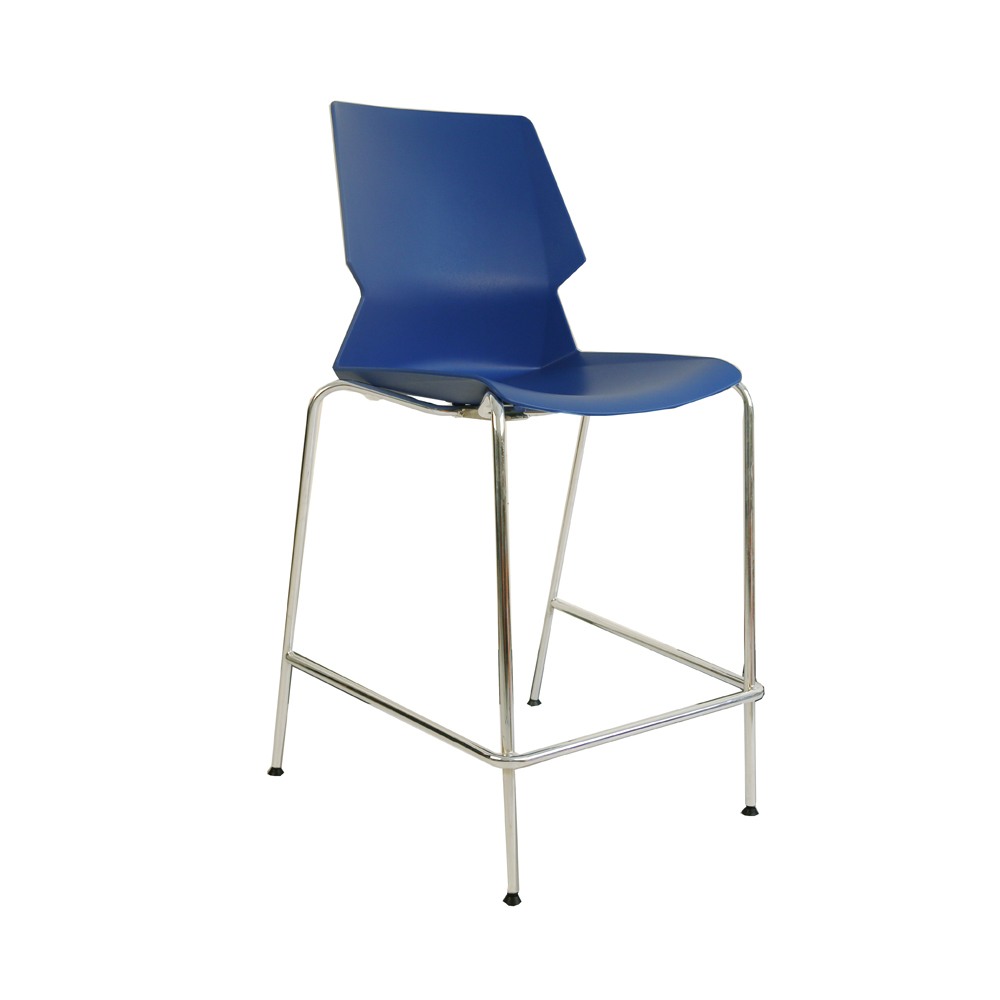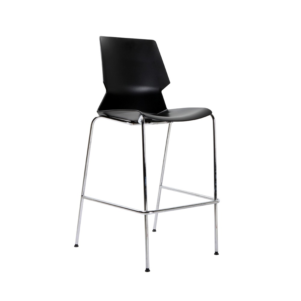 כסא בר מעוצב, גב-מושב פלסטיק, שלד ניקל 4-רגליים