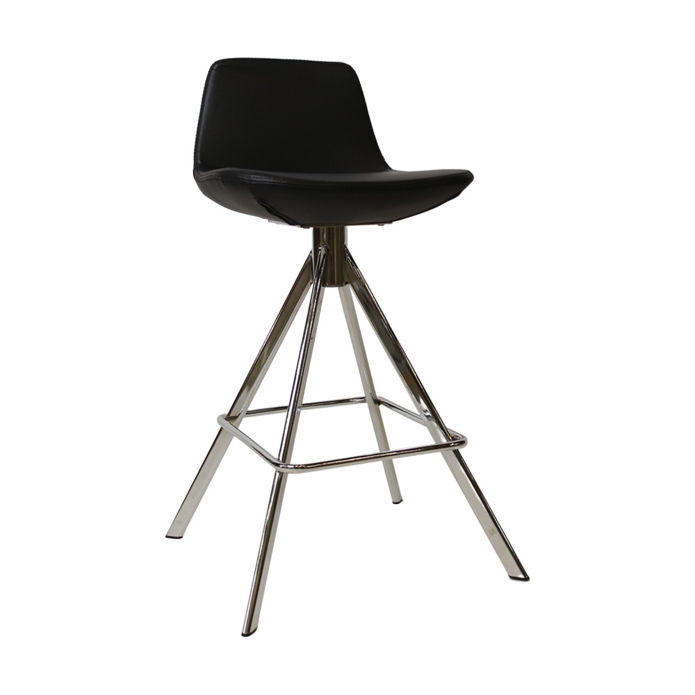 כסא בר מעוצב, ריפוד דמוי עור, שלד ניקל