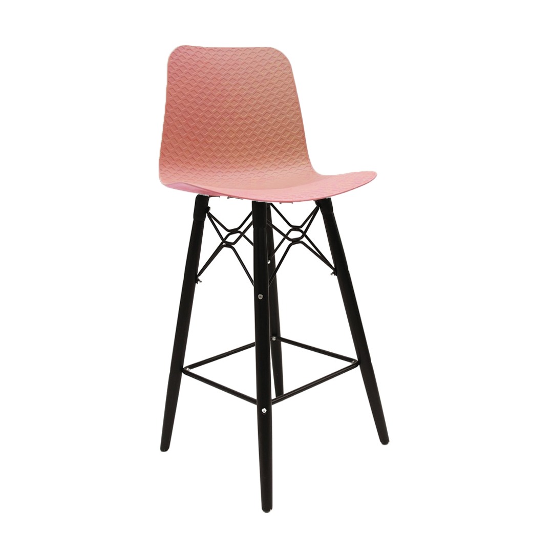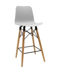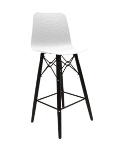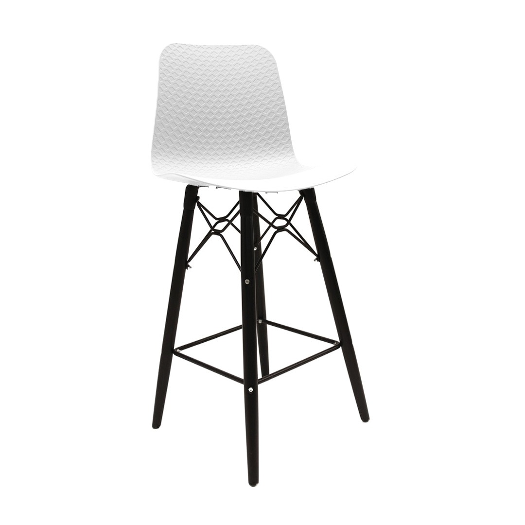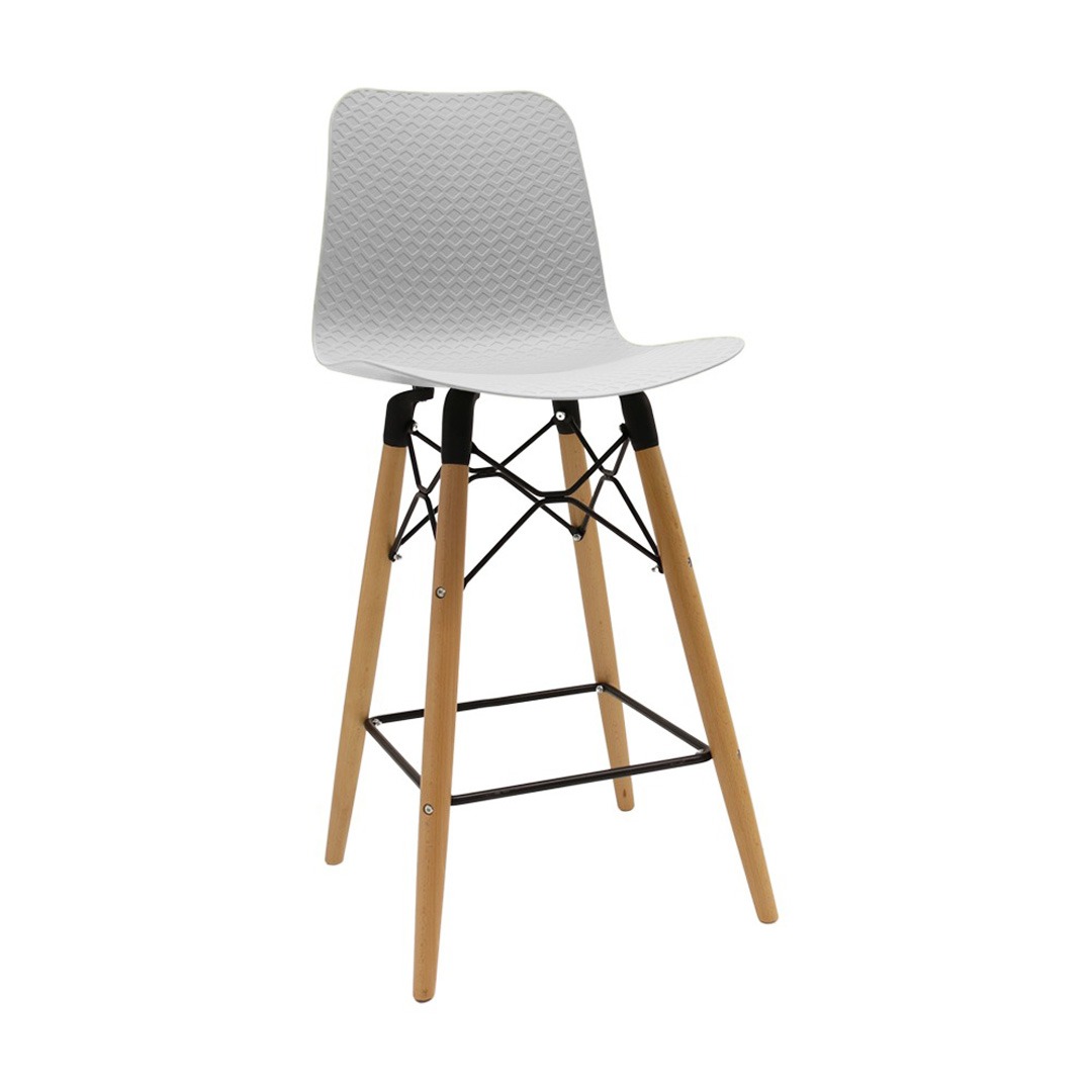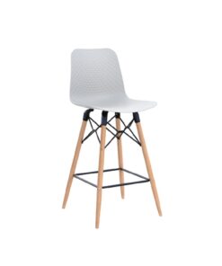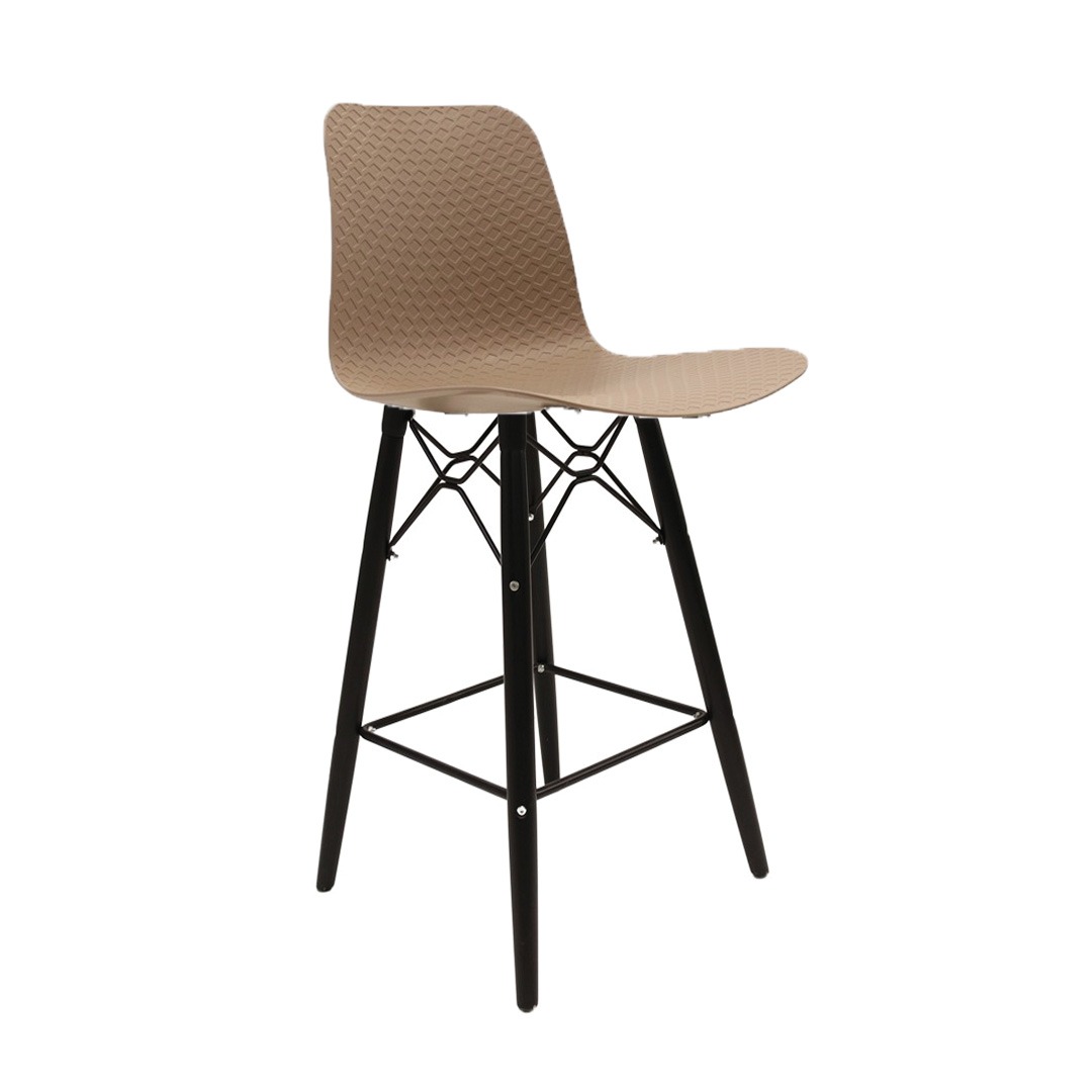 כסא בר מעוצב, מושב פלסטיק, שלד עץ 4-רגליים עם מסגרת מתכת למנוחת הרגליים