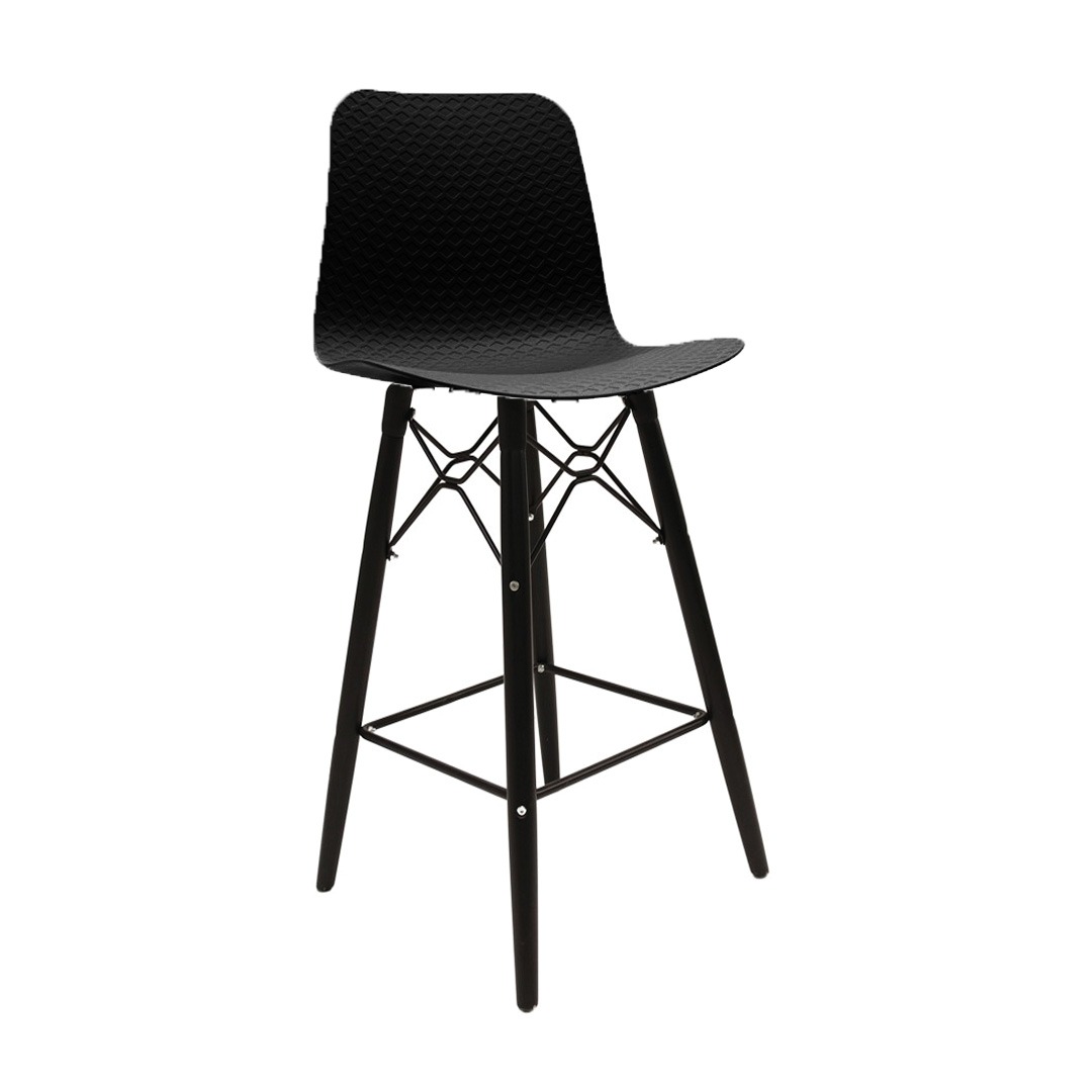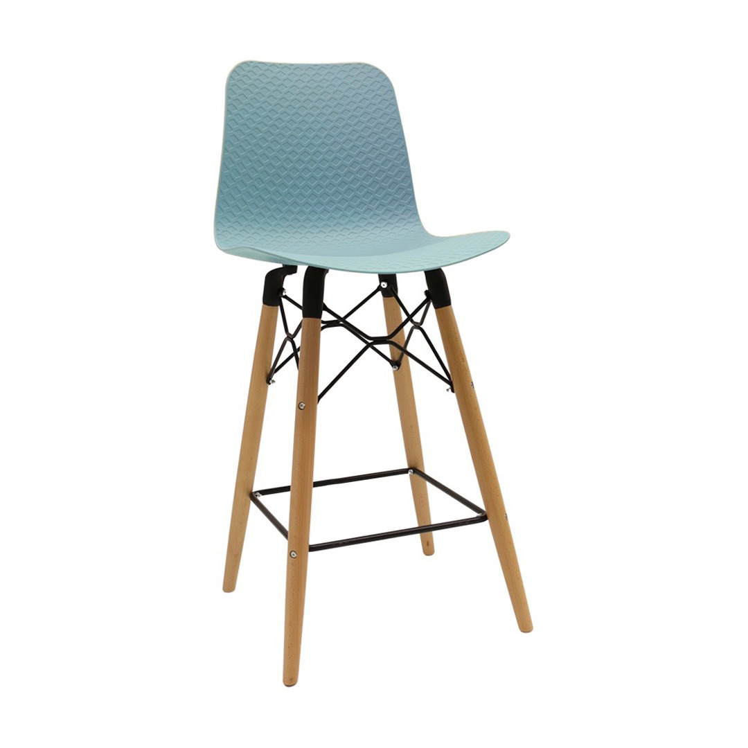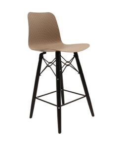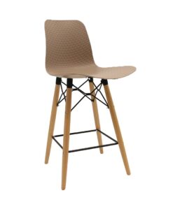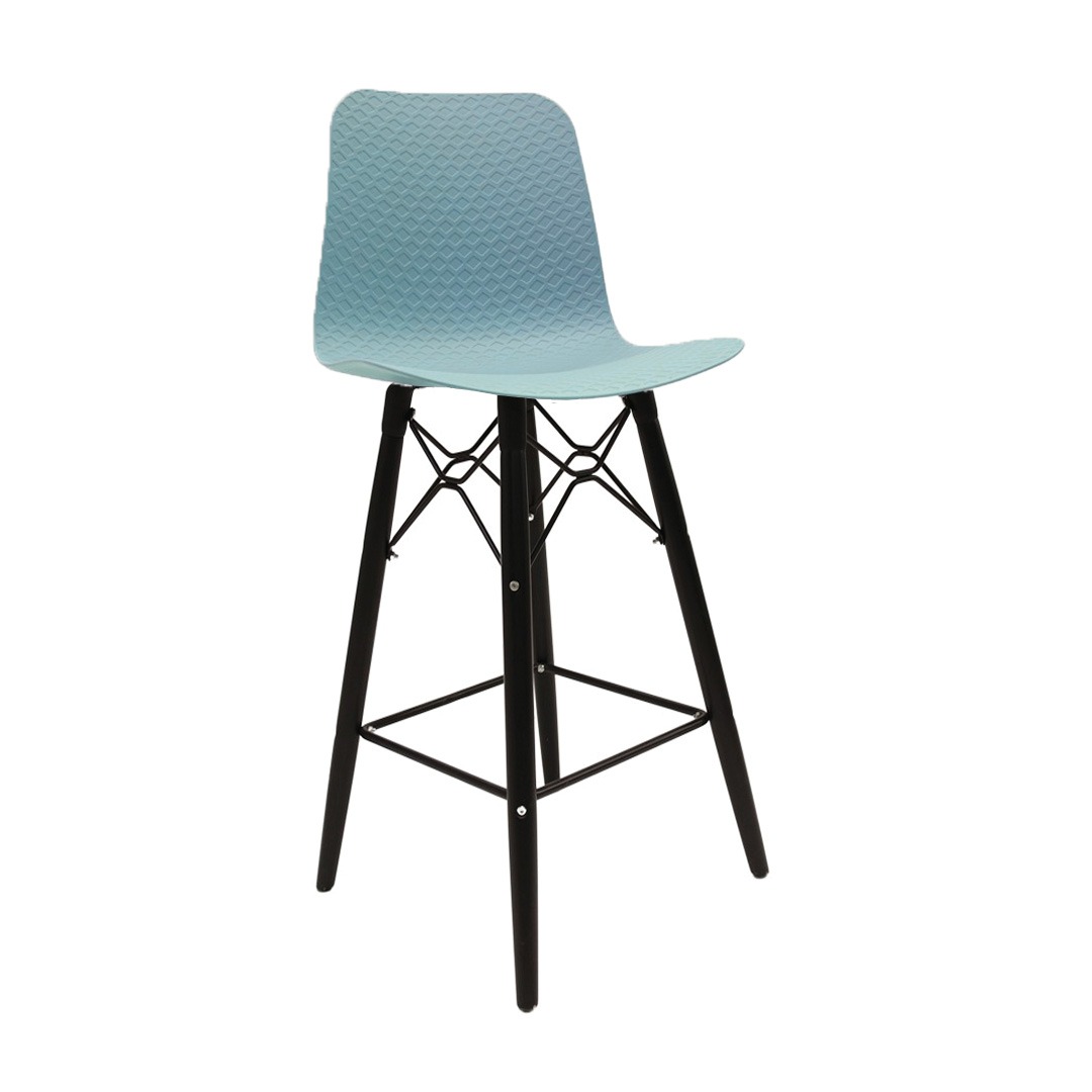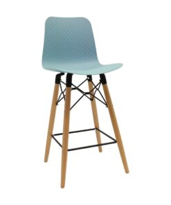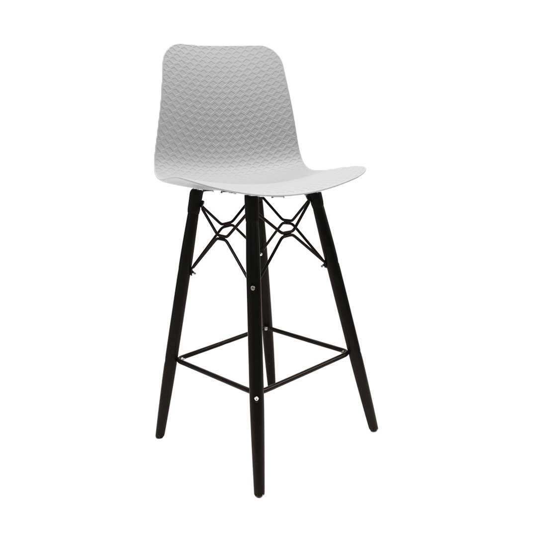 כסא בר מעוצב, מושב פלסטיק, שלד עץ 4-רגליים עם מסגרת מתכת למנוחת הרגליים