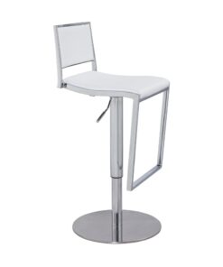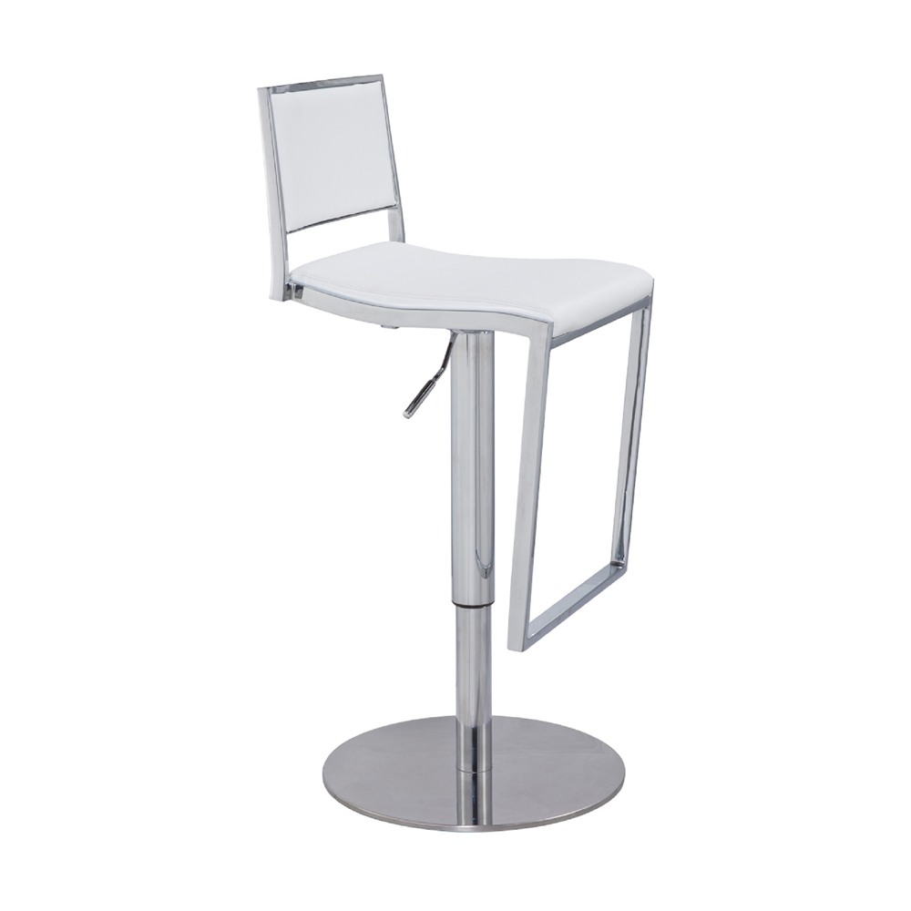 כסא בר מעוצב עם מנגנון בוכנה, ריפוד דמוי עור, שלד ניקל צבע קרם